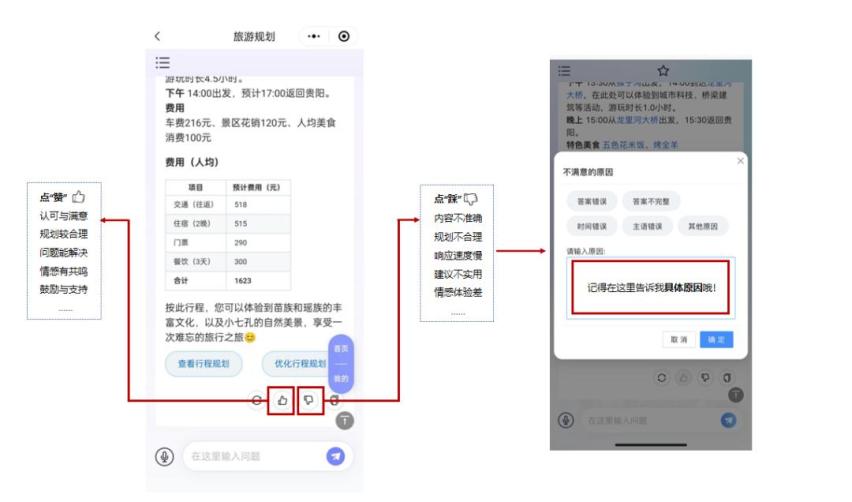 2、在使用过程中回答得好的可点击智能体内的“赞”,回答得不好的可点击智能体内的“踩”,并反馈问题细节及感受,系统将自动收集,并作为下一步优化依据。