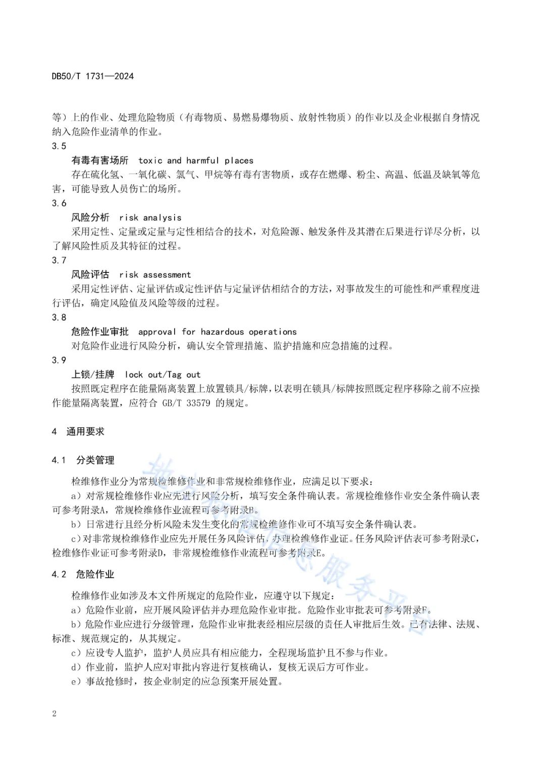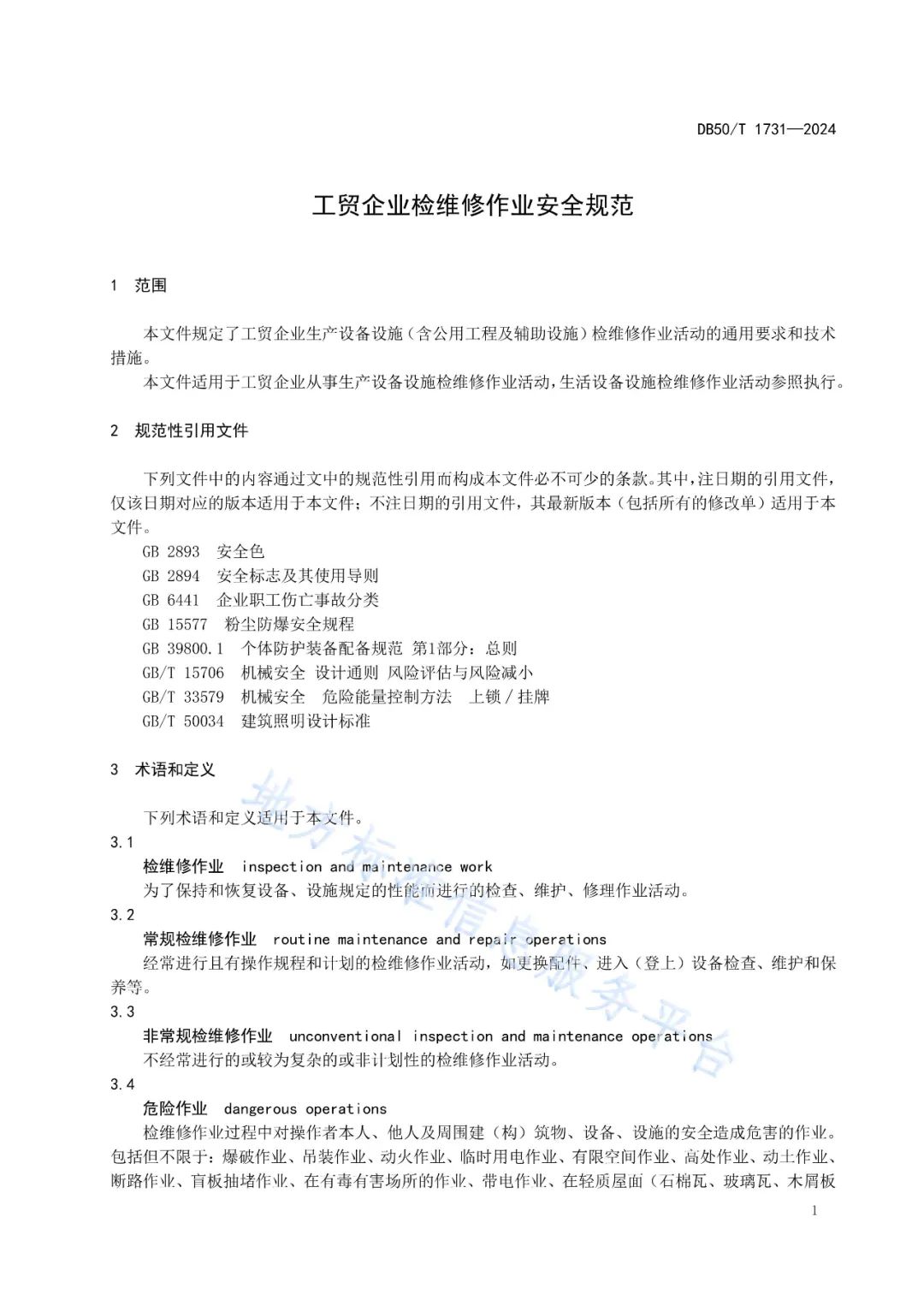近年来,因作业环境复杂、管控难度大等特点,工贸企业检维修作业事故多发频发。针对该突出问题和工贸企业检维修作业安全规范缺失的实际,重庆市应急管理局联合市场监管部门,学习借鉴国家相关法规标准和部分企业先进经验做法,立足重庆实际,制定出台重庆市地方标准《工贸企业检维修作业安全规范》(以下简称《规范》)。《规范》为全市工贸企业检维修作业安全提供了制度遵循,于2月27日开始正式实施。