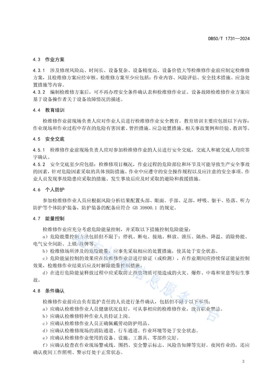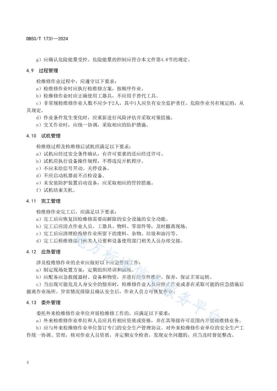 通用要求聚焦工贸企业检维修作业全流程管控,从分类管理、危险作业、作业方案、教育培训、安全交底、个人防护、能量控制、条件确认、过程管理、试机管理、完工管理、应急管理和委外管理等13个环节,提出了具体措施要求。
