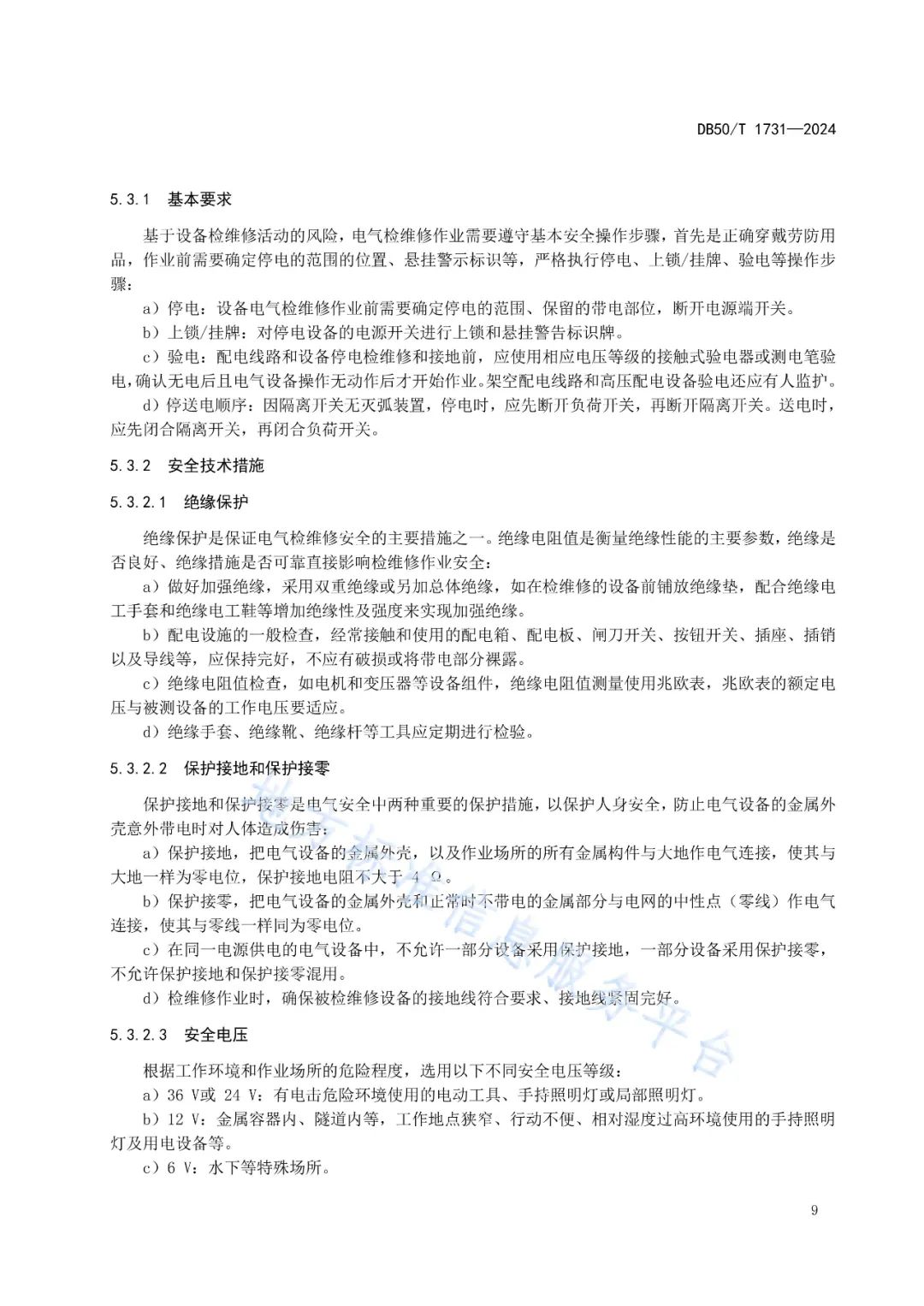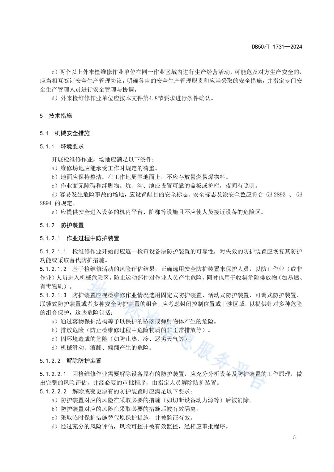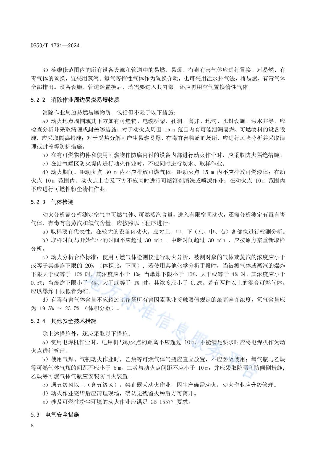 技术措施主要从机械安全、防火防爆、防中毒窒息、电气安全和防坠落等5个方面,提出了具体技术措施。
