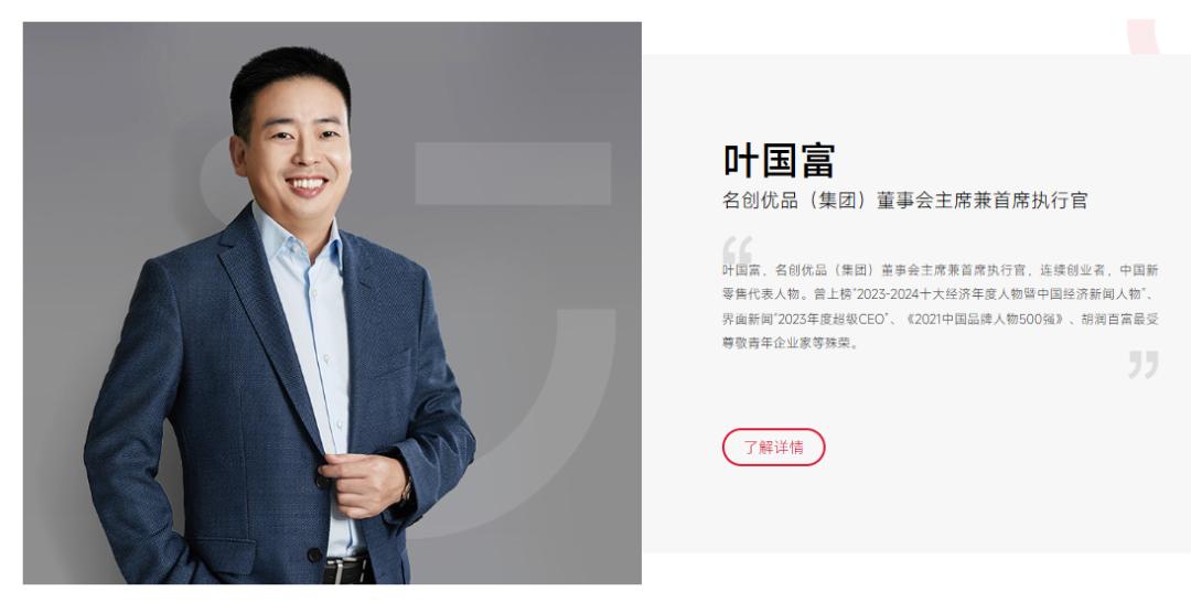 叶国富 截图自名创优品官网实际上,不管高层、股东变换与否,一条贯穿永辉超市发展的主线是:学习胖东来。