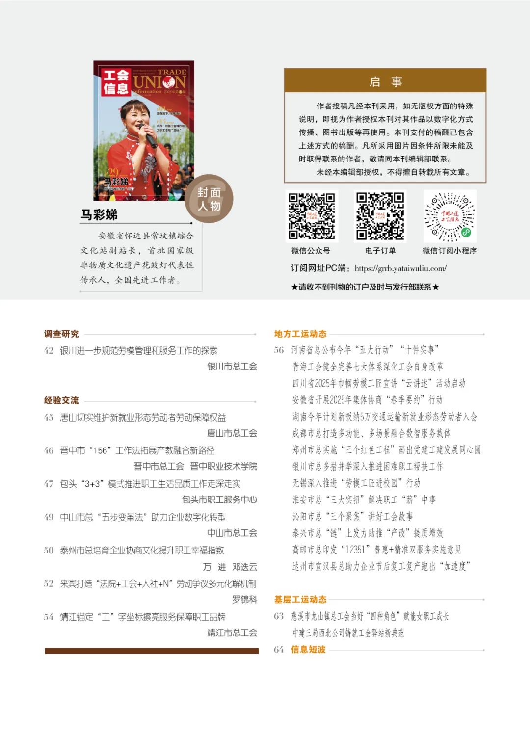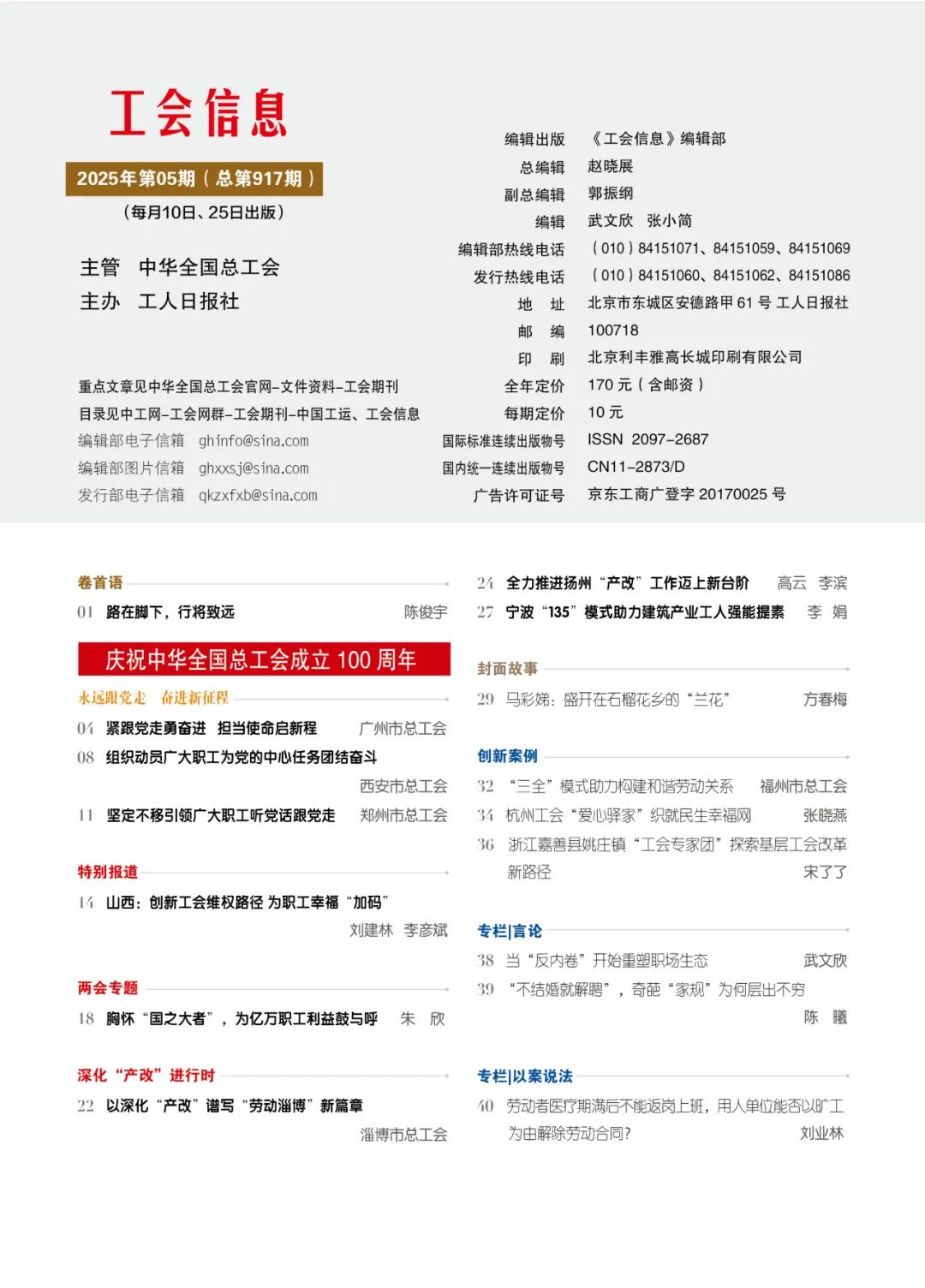 无论是拓展服务领域,还是优化服务质量,都需要一步一个脚印地落实,一年接着一年地推进。唯有如此,才能让职工群众感受到更坚实的依靠、更细致的关怀、更温暖的守护。这条路,没有终点;这份责任,始终在肩。守护好职工群众的合法权益,工会永远在路上。(陈俊宇)