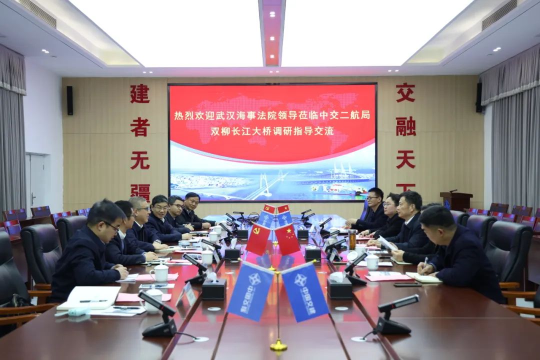 刘恒明对中交二航局的盛情邀请和对法院工作的理解支持表示感谢,并详细介绍了武汉海事法院的历史沿革、诉讼地位、管辖区域、受案范围、机构设置等情况。刘恒明表示,武汉海事法院与中交二航局先后从交通部分离出来,两家单位具有相同的渊源,主责主业都在长江流域,希望双方进一步加强交流协作,拓宽交流渠道,共同研究推动建立“法企联动”机制,在“共抓大保护,不搞大开发”上同向发力、形成合力,积极抢抓湖北省实施“枢纽提能战略”的重大机遇,主动融入“水运上的湖北”建设,为长江经济带高质量发展提供更坚实保障。会上,武汉海事法院和中交二航局相关工作人员还就海事海商纠纷法律适用等问题进行了深入交流。
