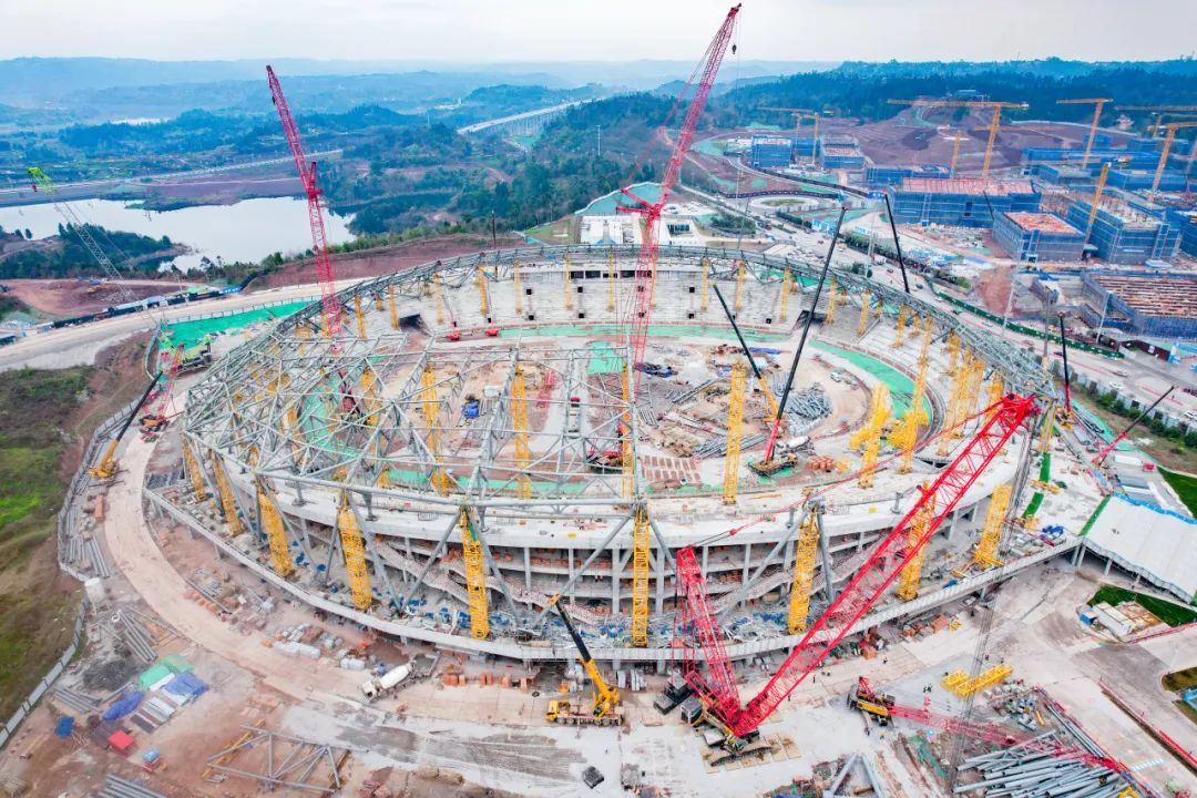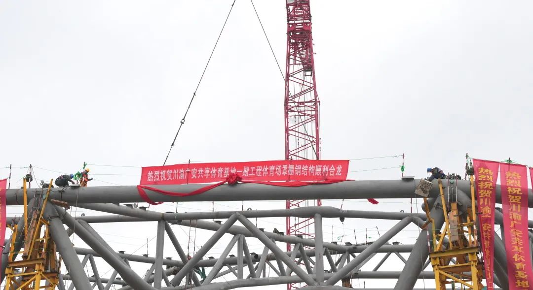 钢骨织翼启新程,川渝广安共享体育基地工程体育馆顺利合拢