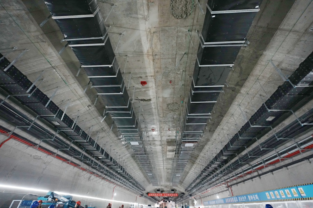 表面“风平浪静”的围挡之下,隐藏着一个忙碌而有序的“地下王国”。焊工、电工、通风工等10多个工种和风管安装、支架加工等20多道工序正在交叉作业,各类材料设备整齐堆放,工人们全身心投入手中的工作,现场一派热火朝天的景象。