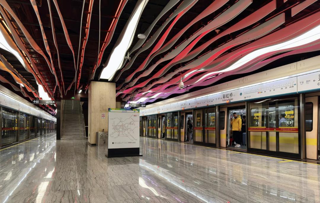 这座“最美地铁站”彩虹桥站位于广州市荔湾区与越秀区交界,是地铁8号线与11号线的换乘站,未来还将接入13号线。它不仅是一座地铁换乘的枢纽站,也是一座值得细品设计的文化艺术空间。