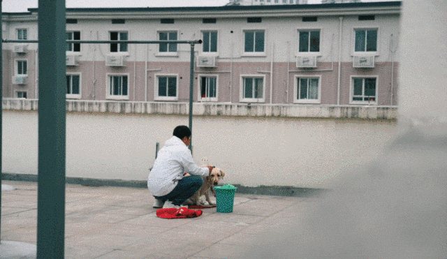 汪涛的宿舍外,有一处大天台,他每隔一天就要在这里给叮当梳毛。