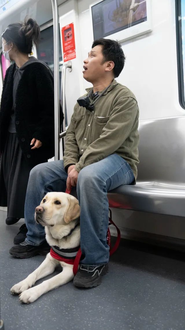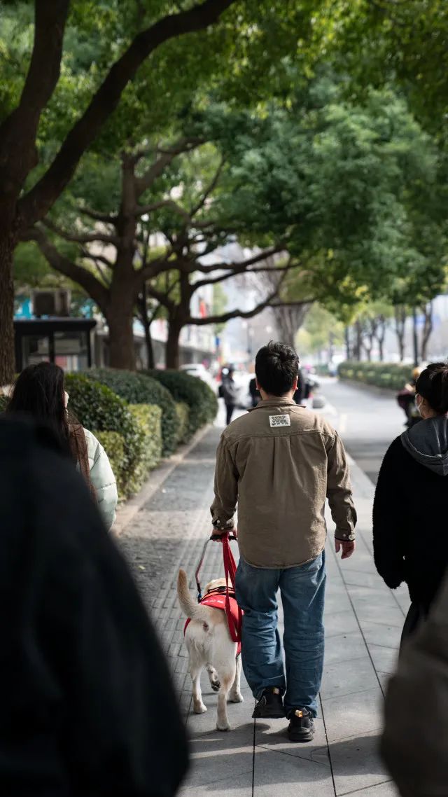 当然,只要带着叮当出行,总能吸引到许多好奇的路人,此时,汪涛就成了“社牛”,笑眯眯地向大家科普:路上要是碰到导盲犬,最好不要呼唤、不要抚摸、不要喂食等,那会破坏导盲犬的注意力。