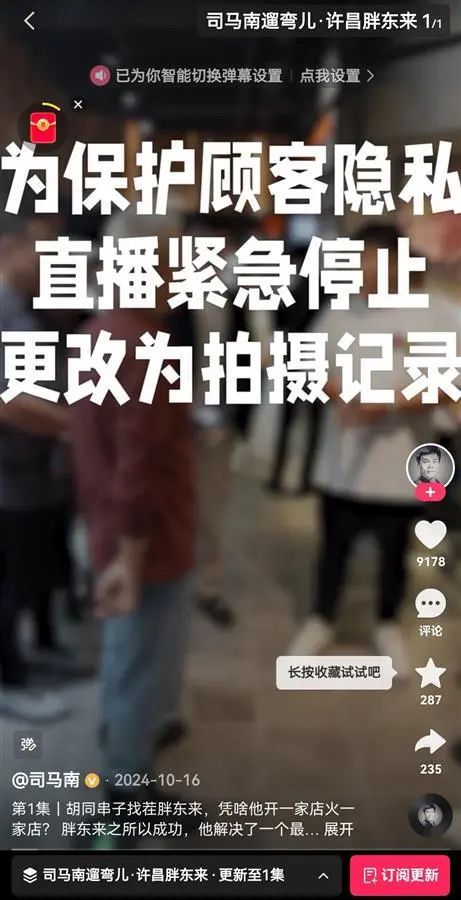 2024年10月13日下午5点河南许昌胖东来的直播无法观看回放,据此前媒体报道,司马南的直播仅持续了13分钟就被中断。画面显示,司马南在直播时,现场有工作人员进行劝离,表示不接受直播。