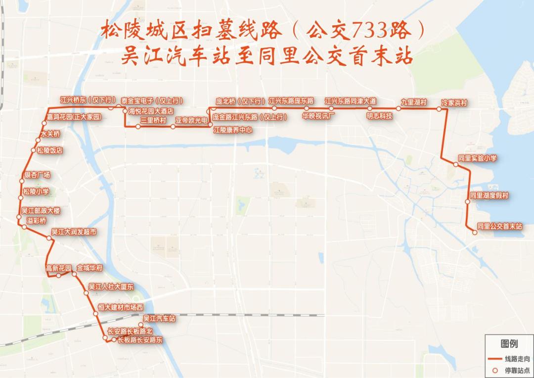 松陵城区扫墓线路公交733路:吴江汽车站至同里公交首末站