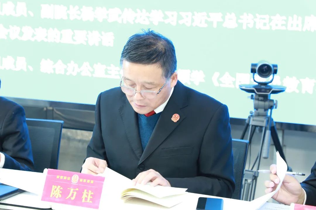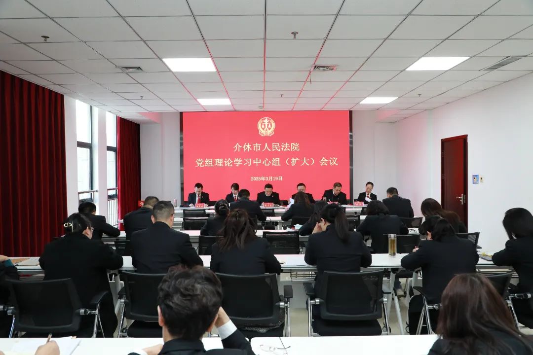 2025年3月19日下午,介休市人民法院召开党组理论学习中心组(扩大)会议,会议由党组成员晋伟主持,中层副职以上干部参会。