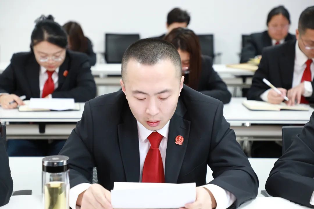 员额法官秦敏敏、张晓文结合自身工作实际以“紧盯提质增效,提升司法动能”为主题,分享了他们作为入党积极分子、共产党员,发挥先锋模范作用奋战在审判一线的经验做法与心得体会。