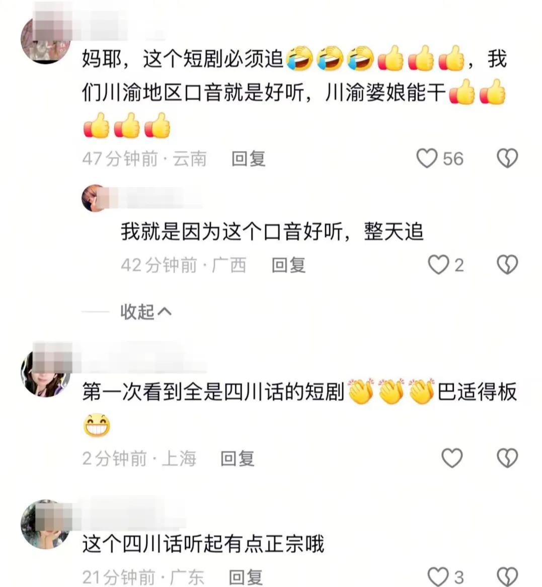 《家里家外》是全网第一部全程采用川渝方言的短剧,不少小伙伴表示:看之前——一想到电视剧说四川话就想笑;看之后——不说四川话简直不对味。
