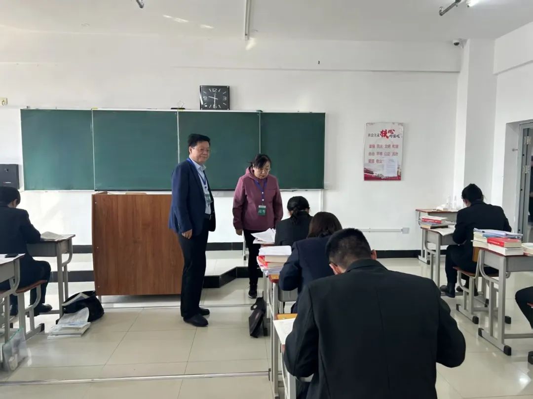 考试前,内蒙古自治区高级人民法院审判委员会专职委员李全锁、立案庭庭长刘洪舫带队提前查验考点准备情况并现场指导;考试期间,李全锁专委一行对考场进行巡视,通辽市中级人民法院党组书记、院长徐延成,党组成员、政治部主任杜祎陪同。