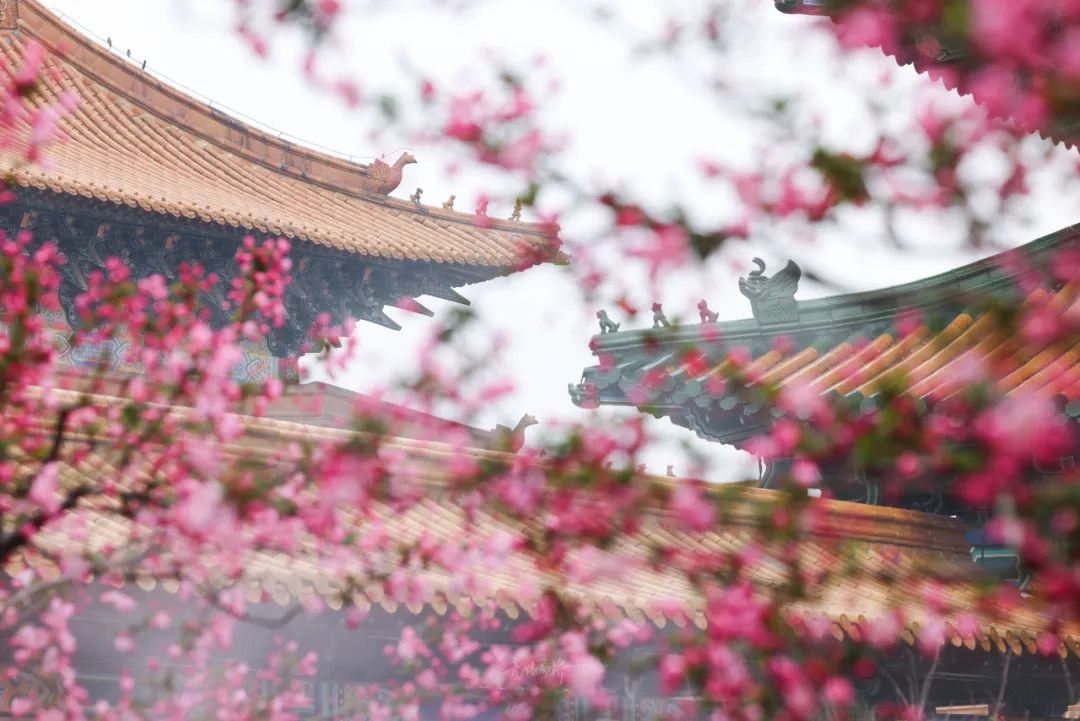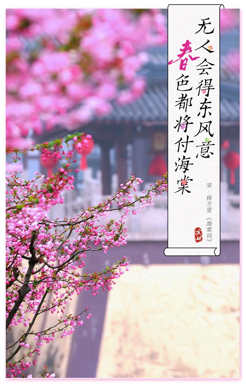 当夕阳为海棠镀上金边,建筑的飞檐与花影共沐余晖,此时此刻,再无“无人会得”的怅惘,只剩古建与海棠相互映照的成全之美。