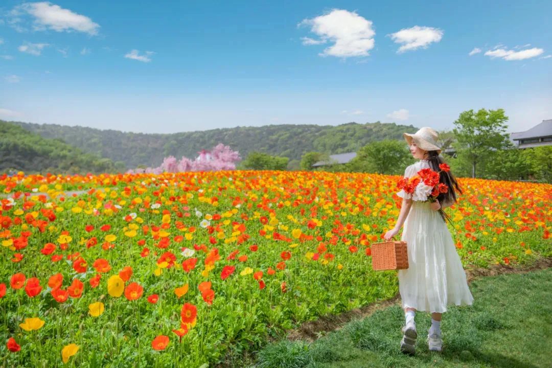 乘坐粉色小火车,让樱花雨淋一身诗意;步入如莫奈花园的梵天花海,与满山坡摇曳的虞美人相拥;木绣球也在酝酿一场盛大的花事,洁白无瑕的花朵让鹿鸣谷增添了遗世独立的清透气质。拈花湾的春日,是禅意与花海的共舞。