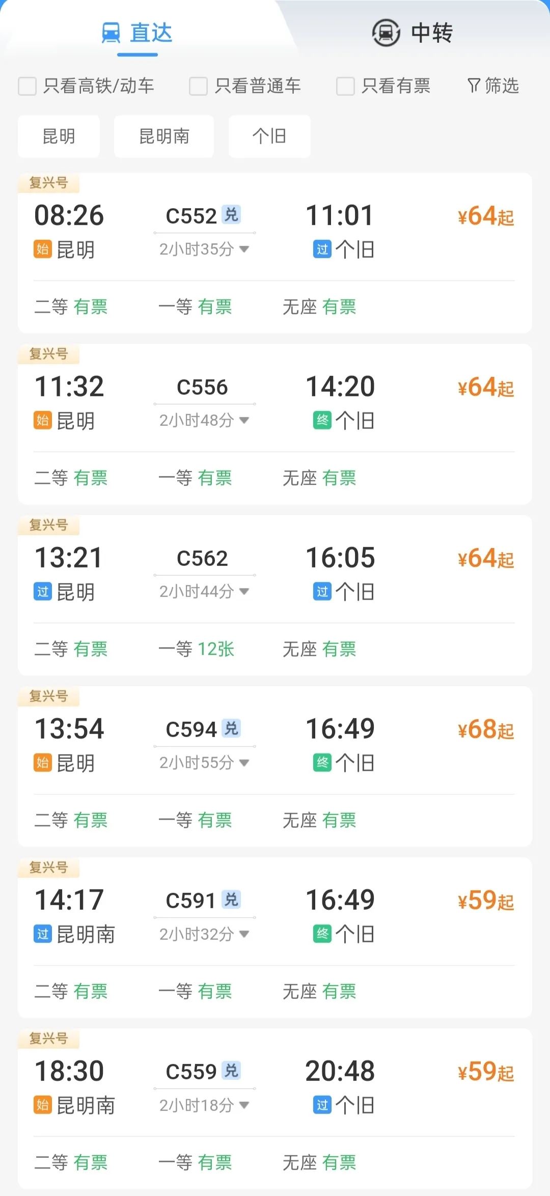 (以上列车信息仅供参考,详情请查询12306)在个旧站出站后