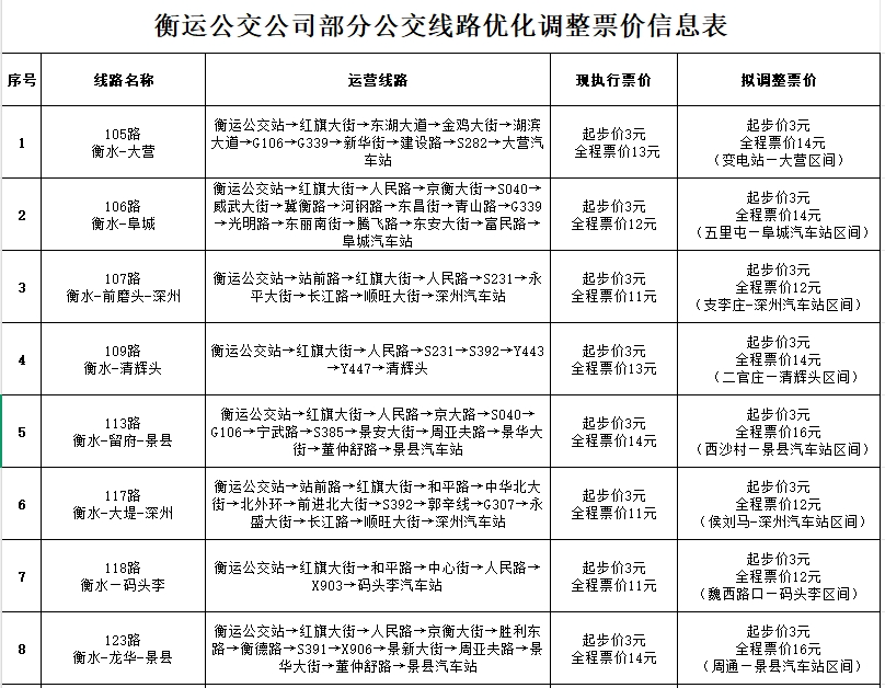 3月26日起,衡水这些城际公交线路票价将调整→