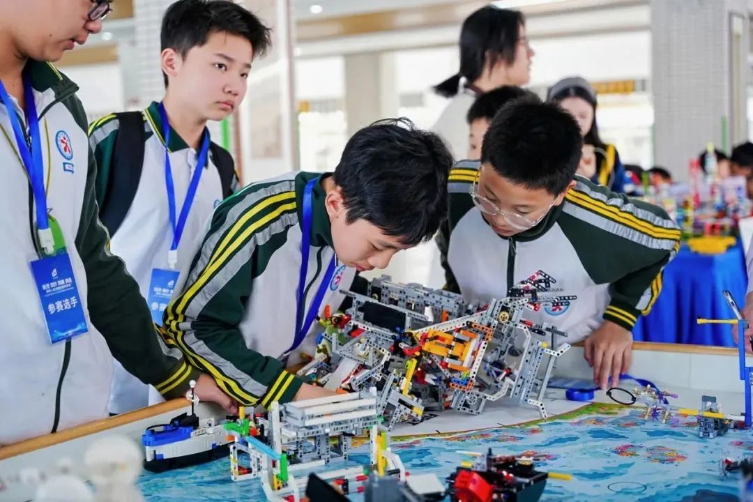 作为东莞市特色交流项目,人工智能现场协助挑战赛吸引了众多目光。参赛队伍通过编程和操控步兵机器人、工程机器人及无人机进行联合对抗,展现了高超的技术水平和团队协作能力。比赛不仅考验选手的编程技能,更考验他们的战略思维和应变能力,现场战况激烈,欢呼声不断。智能机器人比赛与FLL科创专项项目(FLL少儿探索和FLL青少年机器人挑战)同样气氛热烈,轮式机器人、履带式机器人和飞行机器人轮番登场,积木搭建、编程和团队合作,也展现了科技创新的无限可能。