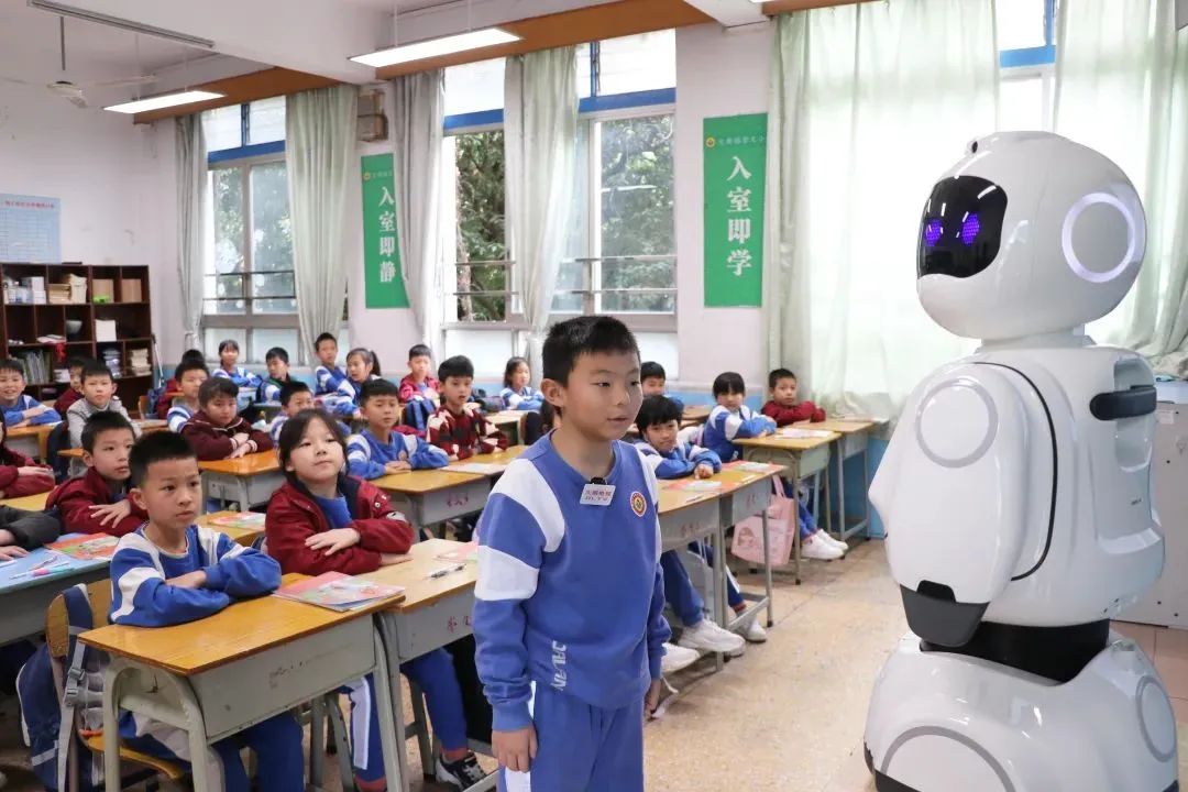 在东坑镇第三小学,智能机器人小E和小π已成为日常教学中的重要伙伴。作为东莞市首批人工智能应用实验学校之一,学校精心打造的“云边·编程室”与“星际·航模室”两大智能综合实践教室,也为学生提供了前沿的科技体验与实践机会。在校内的人工智能应用场景,孩子们亲自操作,感受语音和图像识别等技术的实际应用。利用人工智能赋能的智慧图书馆,也配备基于AI的虚拟助手,能够根据学生的学习进度适时推送相关学习材料,辅助完成课程学习任务。