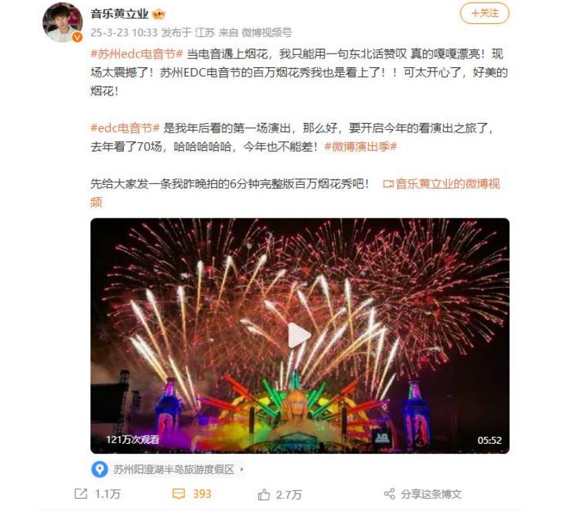 “我非常享受演出。现场有针对外国观众的人工通道以及英语志愿者,体验感很好。苏州是一座美丽的城市,令人着迷。”“音乐风格多元、可玩性很高,太值得来一趟了!”“EDC不愧是全球顶流,音乐多元包容,舞台场景令人印象深刻。苏州工业园区很有国际范儿,与EDC潮流时尚的调性很契合。”······无论在演出现场,还是在社交平台,EDC所引发的“连锁反应”仍在持续升温,观众们慷慨地分享着他们对EDC的热爱,以及在园区参与EDC所获得的种种惊喜。