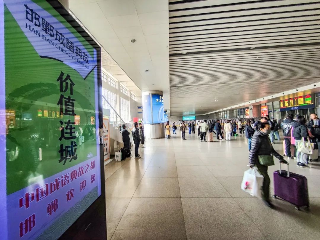 车站候车厅内还设有电子显示屏,循环播放邯郸成语典故。