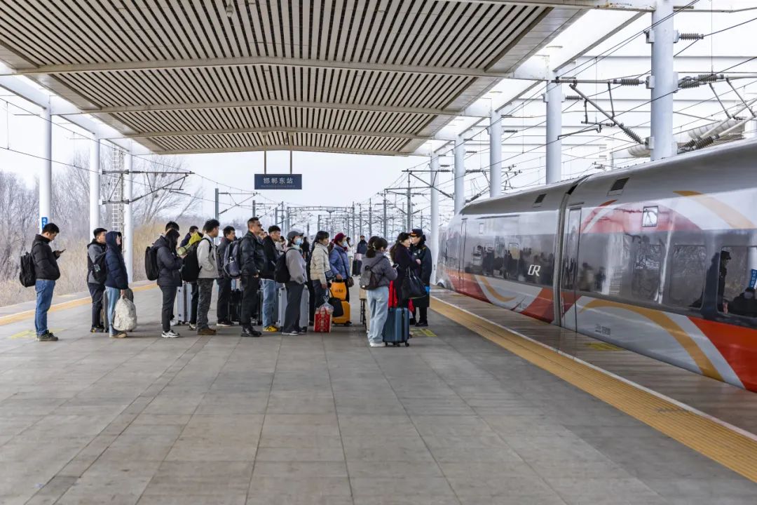 邯郸东站是京广高铁上的一座中间站,日均图定高铁列车100多趟。