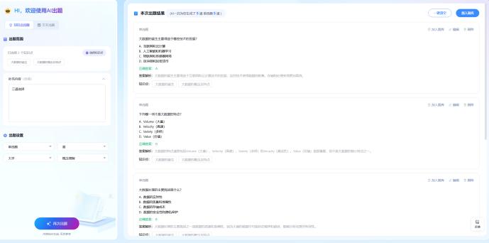 针对纺织服装行业“重创意、强实操”的特点,平台集成15+垂直AI工具包,与DeepSeek协同实现教学资源智能化生成。教师可通过AI课件一键生成课程PPT,智能编写一键生成虚拟时装秀脚本、数字化打版案例库,辅助快速搭建“设计——生产——营销”一体化课程;同学们可以利用AI生成工具,快速创作纺织品电商直播话术脚本与消费者行为分析研究等。AI批改功能还能自动评审主观题作业,为师生提供实时反馈,让创意落地更高效!