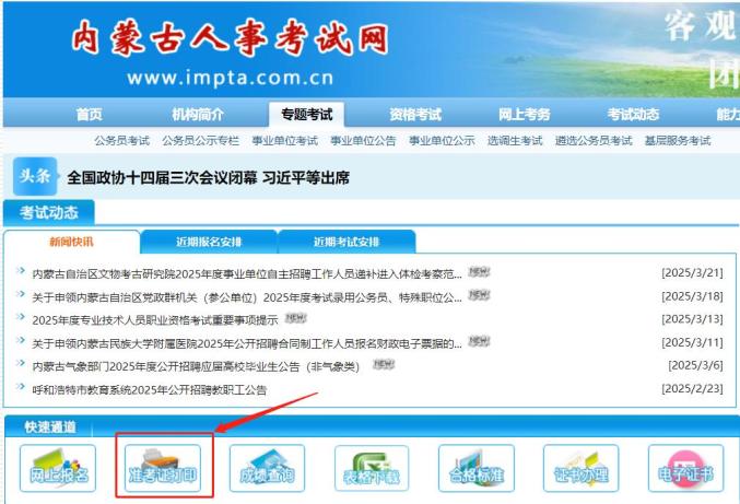 内蒙古事业单位笔试明日起打印准考证!打印入口→
