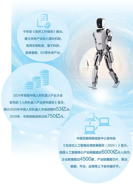 今年的《政府工作报告》提出,建立未来产业投入增长机制,培育生物制造、量子科技、具身智能、6G等未来产业。这也是“具身智能”首次写入《政府工作报告》中。