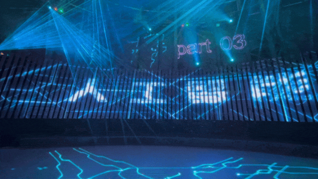 苏州·未来科幻馆4层东区设置的是【未来之眼 空间秀场】,这是一个超时空光影秀场,秀场主要的设计理念是,打造一场充满创新与未来感的艺术视听盛宴,以悬吊在空间中的超大型新媒体艺术装置“未来之眼”为视觉核心,配合环境中的Led灯、射灯、激光灯组成的灯光秀演绎,再以烟雾、音乐音效等烘托氛围,呈现一场多感官的多媒体沉浸式视听体验。
