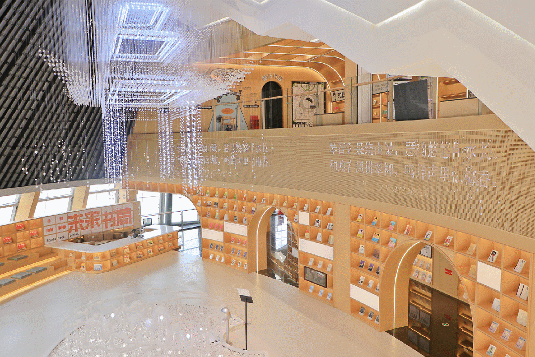 6楼的公共阅读区内放置了2000多余本书籍,同时拥有数字人苏小妹、心跳装置、AIGC写诗、绘本奇境等数字化场景。