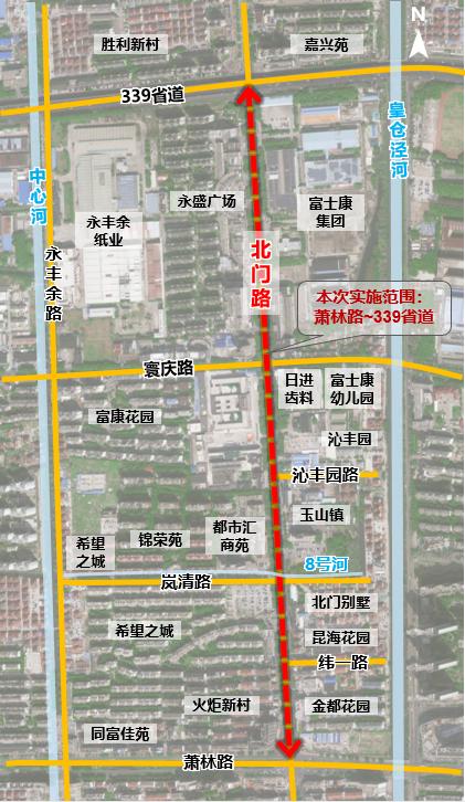 项目南起萧林路,北至339省道,全长约1500米、宽约34米。规划为城市主干路,采用双向4车道沥青路面结构,道路实施“白改黑”,配套升级更新供水、电力、燃气、通信等民生设施,提高城市综合承载能力。