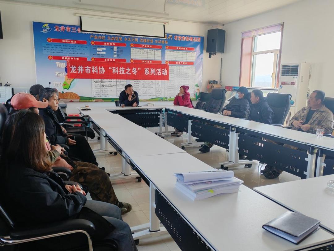 龙井市科协举办“科技之冬”苹果梨种植技术培训会近日,龙井市科协联合延边州农业科学院果树研究所,在三合镇鹤栖村举办“科技之冬”苹果梨种植技术培训会,来自全村的10余名果农参加了此次活动。活动中,延边州农业科学院果树研究所副所长、研究员李雄,结合龙井地区气候特点和果树种植现状,围绕苹果梨种植管理、施肥管理、果实采收等方面展开系统讲解,并针对农户提出的病虫害防治、果树修剪等问题进行了专业解答。