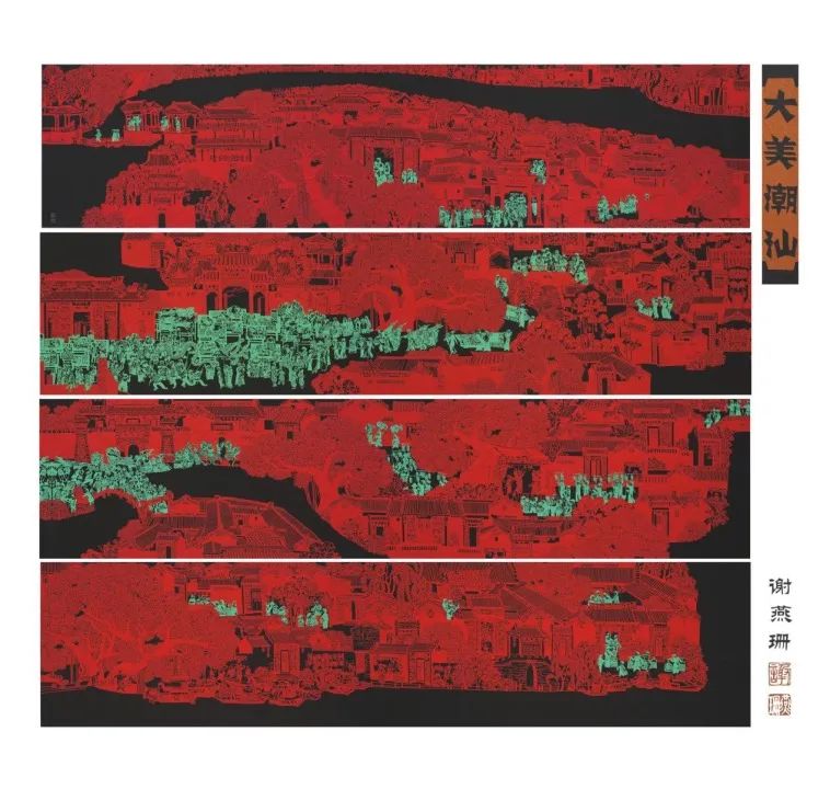 若问谢燕珊哪幅作品最为令人惊叹?无疑是历时两年多,长12米、宽70厘米的剪纸长卷《汉唐遗韵·大美潮汕》。