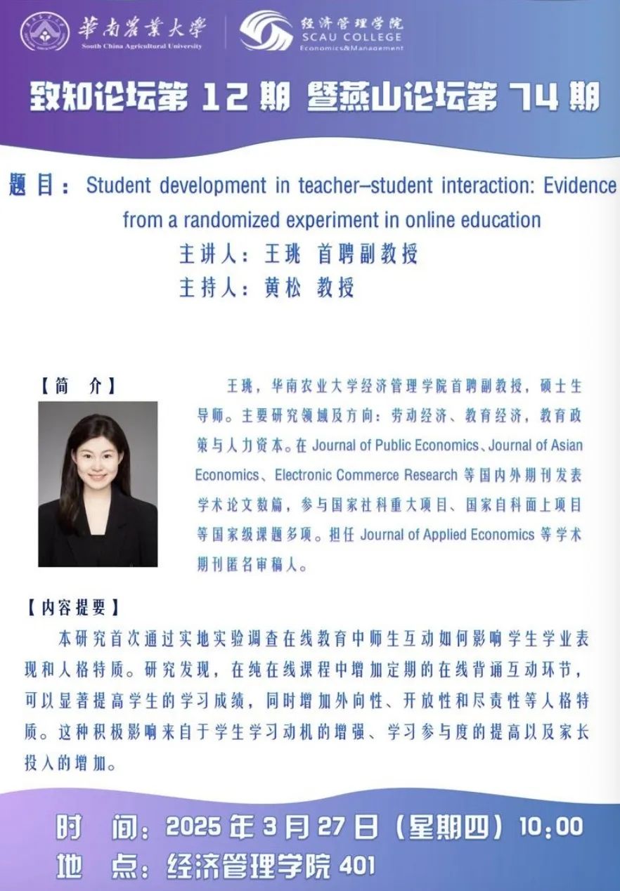 3月27日丨致知论坛第12期暨燕山论坛第74期讲座 Student