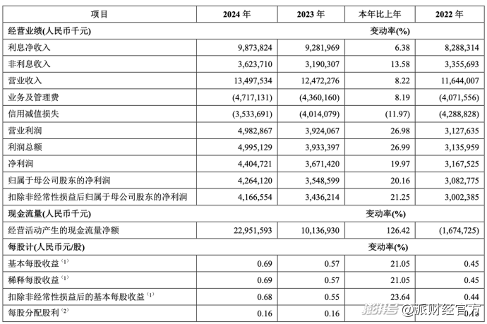 2024年,青岛银行利息净收入为98.74亿元,同比增长6.38%;非利息净收入为36.24亿元,同比增长13.58%。非利息收入占比为26.85%。