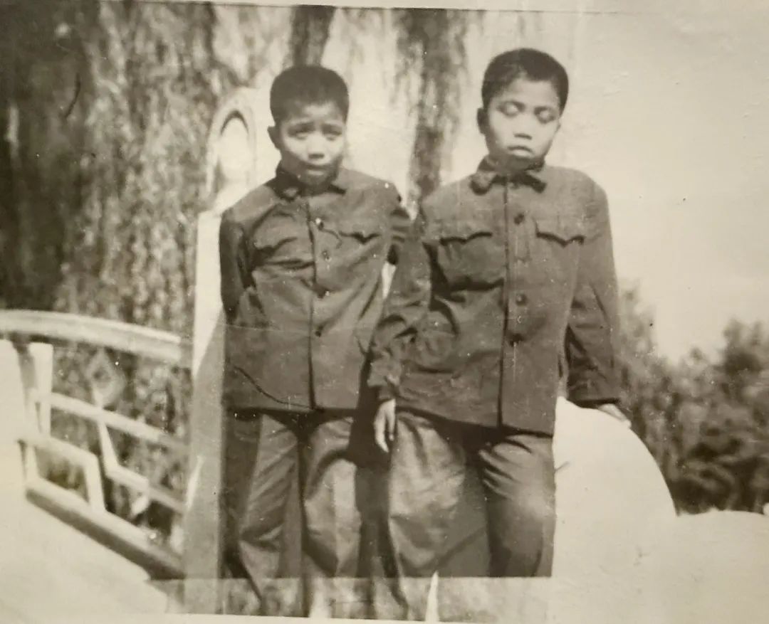 少年时期的潘磊(右)、潘义(左)1972年出生于北京昌平区的兄弟俩,从小生活在钢轨旁。