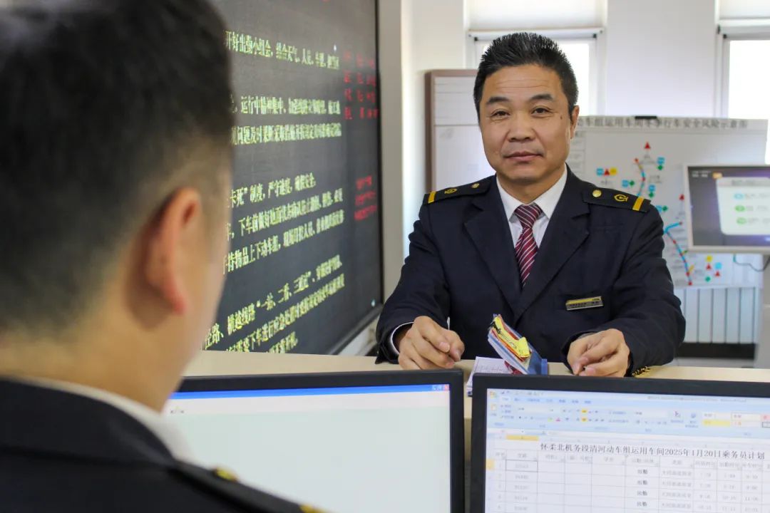 潘义出乘前核对调度命令家人的理解,是他们保证行车安全的坚实后盾。