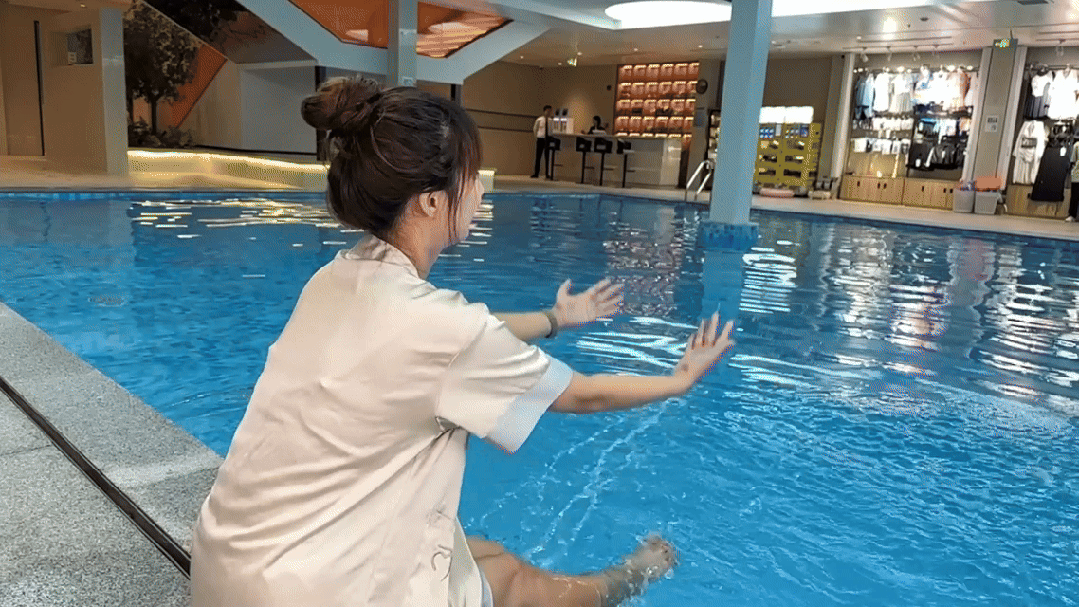 一楼还有超大游泳池,尽情畅游,旁边特别的风暴浴室,新奇又刺激,体验感直接拉满。