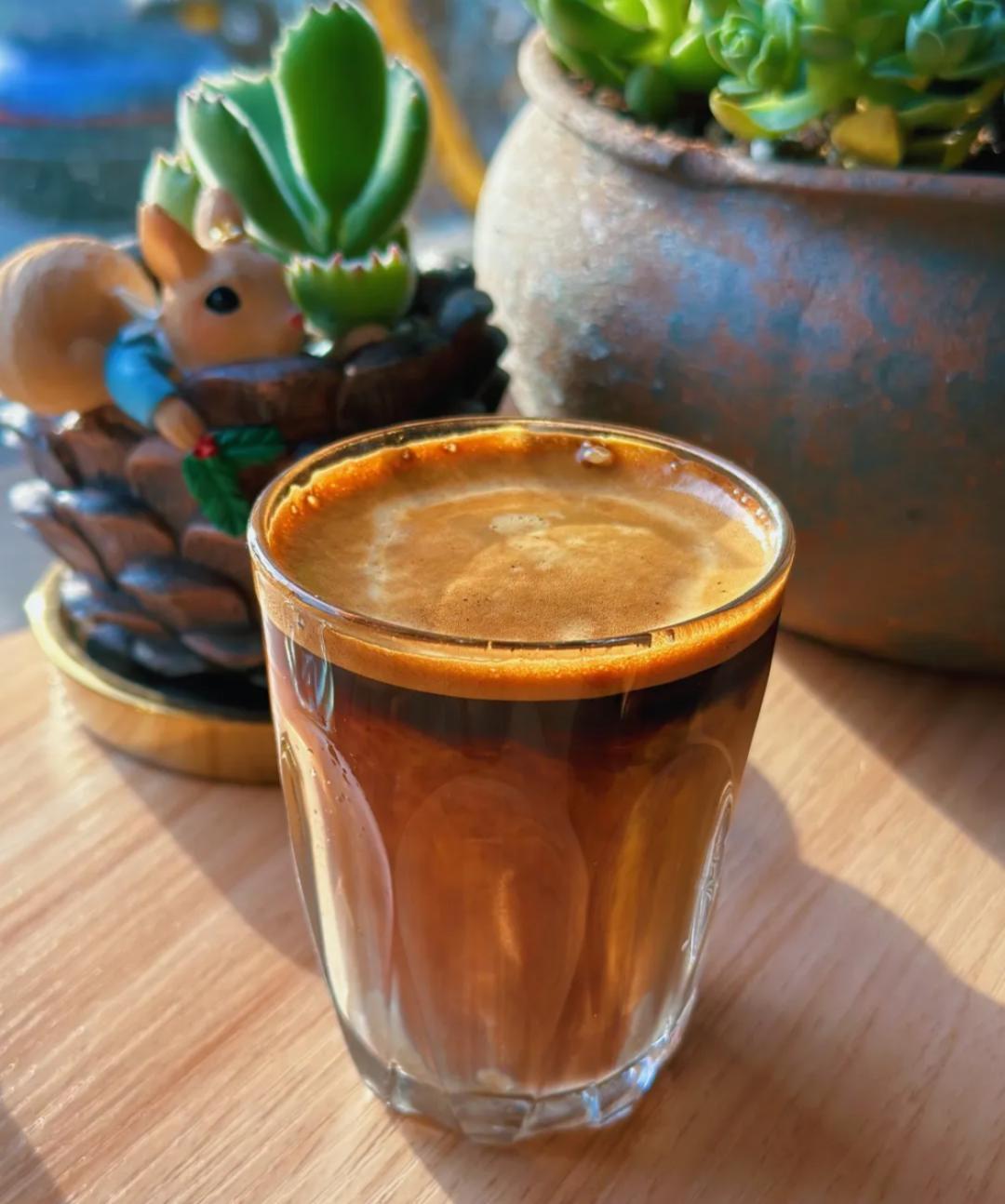 他家的Dirty 是一种上层为浓厚的意式浓缩咖啡,下层是冰冰凉凉的牛奶的咖啡饮品。喝 Dirty 需要大口喝,才能同时喝到上面的浓缩咖啡和下面的牛奶,体验到冰火两重天的感觉。