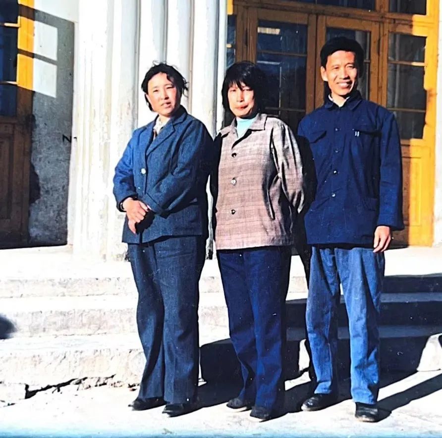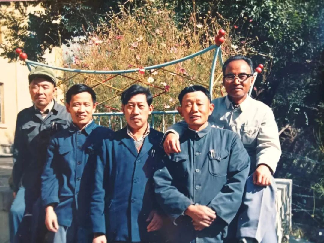 1982年吴传志(左二)和老同事在可可托海矿务局机关二支部门口合影