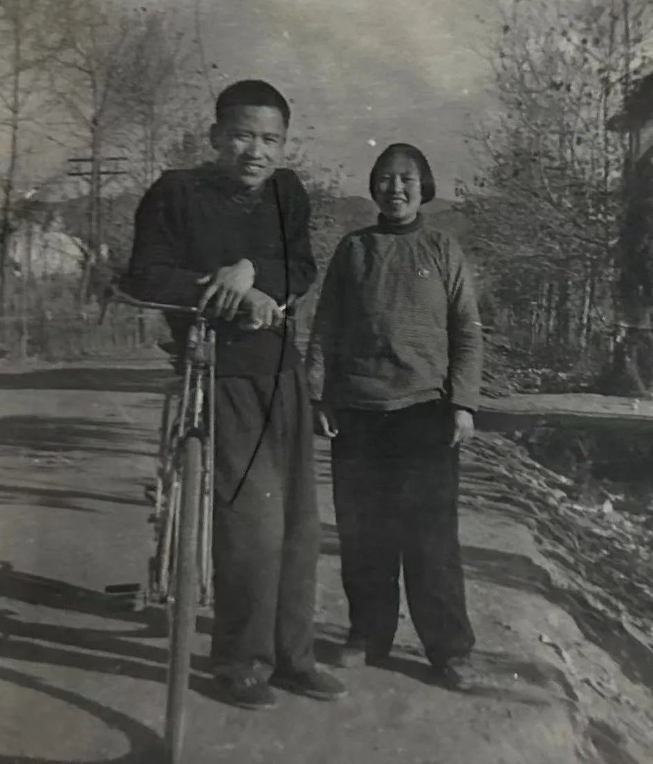 吴传志和爱人王菊芳1968年在可可托海人民银行门口合影留念