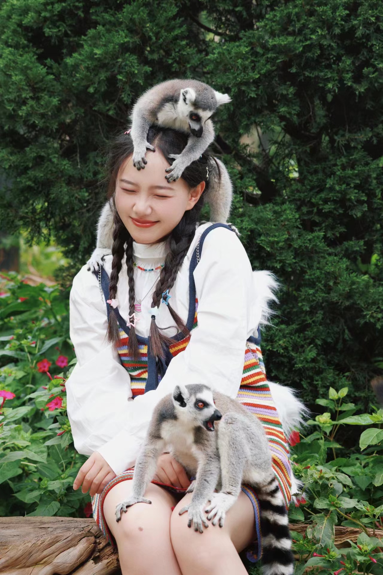 但你以为看看就完了吗?NO!近距离互动可是这里的一大特色。溜溜达达的孔雀,有吃的就凑过来吃两口;会跳到你身上合影的环尾狐猴,超级热情,一个人身上扒四五只不是事;“一骂成名”,最近变乖很多的小灰鹦鹉;扒着你的腿找你要东西吃的小浣熊;伸过头来求摸摸的“陆地坦克”犀牛……还可以和佛系顶流卡皮巴拉来一场互动,“按摩”舒服了,它会把肚皮交给你哦!