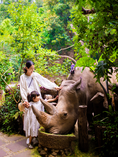 除了长颈鹿,园区里还有散养的小浣熊、孔雀、大嘴鸟、丹顶鹤、松鼠猴……这些温顺的小动物们或隐匿于竹林之中,或栖息在枝头之上,当你走在满是芬多精的园区里,每个角落里都充满了惊喜的偶遇。