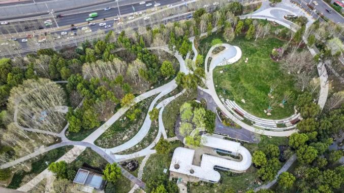 据了解,现场绿化以保留为主,结合场地特点增加多元化功能。“此次改造总体定位,是打造集生态、体育、活力、人文为一体的多维城市会客厅。”蜀山区园林绿化管理中心相关负责人介绍,游园内建有1条优雅环路、5处“公园+”活动空间和3处无界入口。5处“公园+”活动空间将带来“公园+城市客厅”“公园+商务社交”“公园+景观艺术”“公园+青年运动”“公园+儿童活动”的新型空间。