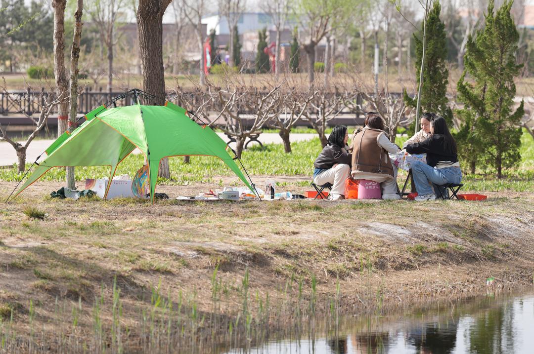 ▲在王口镇王口村南湖踏青游玩,令人流连忘返。
