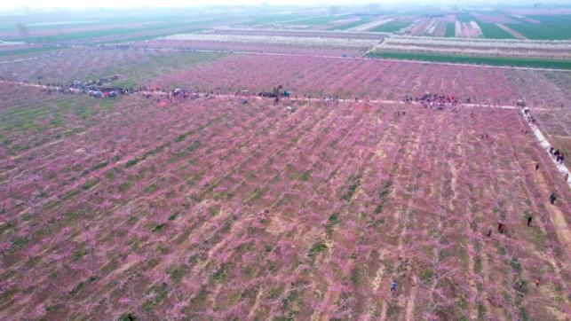 ▲前营乡桃园村700余亩杏花正值盛花期。