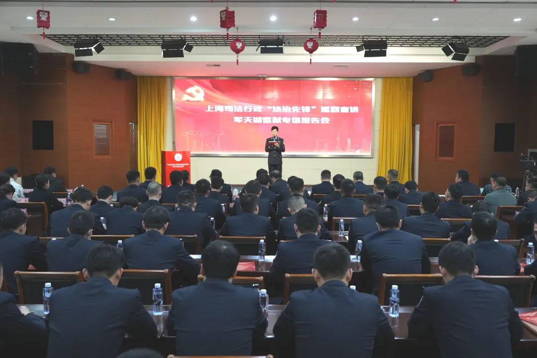 法治践行显担当,先锋宣讲忆“红烛”。2025年3月27日,上海司法行政“法治先锋”巡回宣讲报告会走进地处域外皖南的军天湖监狱,为军天湖监狱民警,以及军天湖农场社区群众、军天湖农场派出所民警、武警上海总队执勤第六支队官兵代表们宣讲。