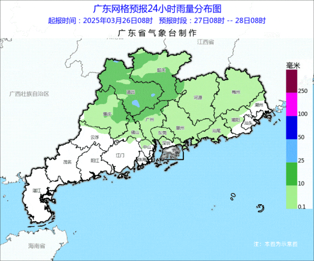省气象台预计,在27日—28日,广东自北向南将有一次中雷雨局部暴雨降水过程,部分市县伴有8级、局地10级短时大风、短时强降水和局地小冰雹等强对流天气,部分市县早晚有(轻)雾;在29日—30日,全省阴天为主,有小到中雨。